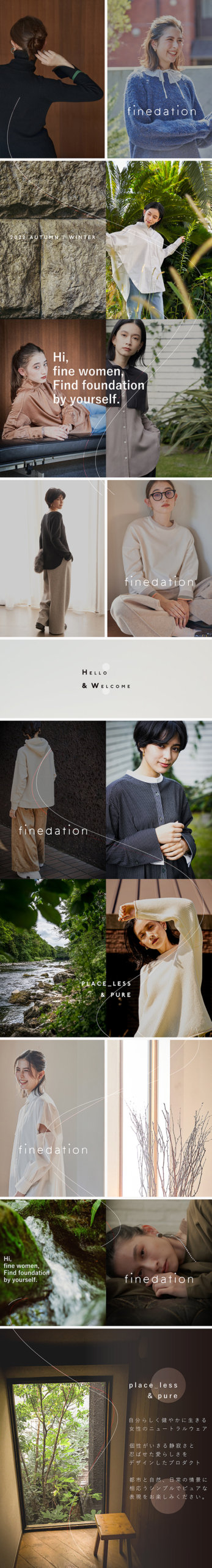 CONCEPT自分らしく健やかに生きる 女性のニュートラルウェア個性がいきる静寂さと 忍ばせた愛らしさを デザインしたプロダクト都市と自然、日常の情景に 相応うシンプルでピュアな 表現をお楽しみください。 【ファインデーション】商品一覧はこちら 【ファインデーション】商品一覧はこちら