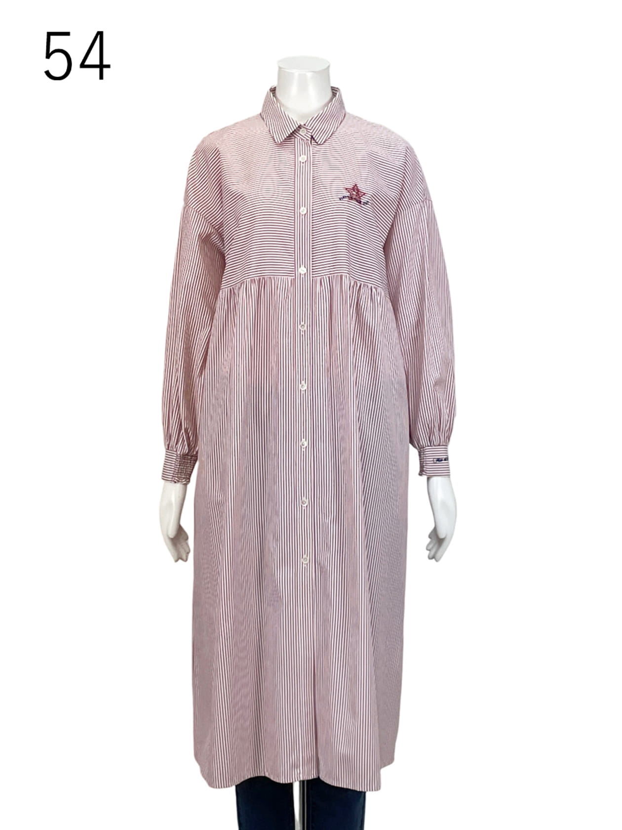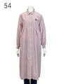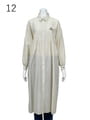 コットン/ポリエステルの先染めストライプを使ったロングシャツ。前開きのロングシャツで上身頃はボーダー使い、下身頃はギャザーを入れたストライプ使いにしています。シームポケット付きで、羽織物としてもワンピースとしても着用出来る1枚です。胸にediちゃんの1ポイント刺繍、カフスにはロゴ刺繍を入れています。