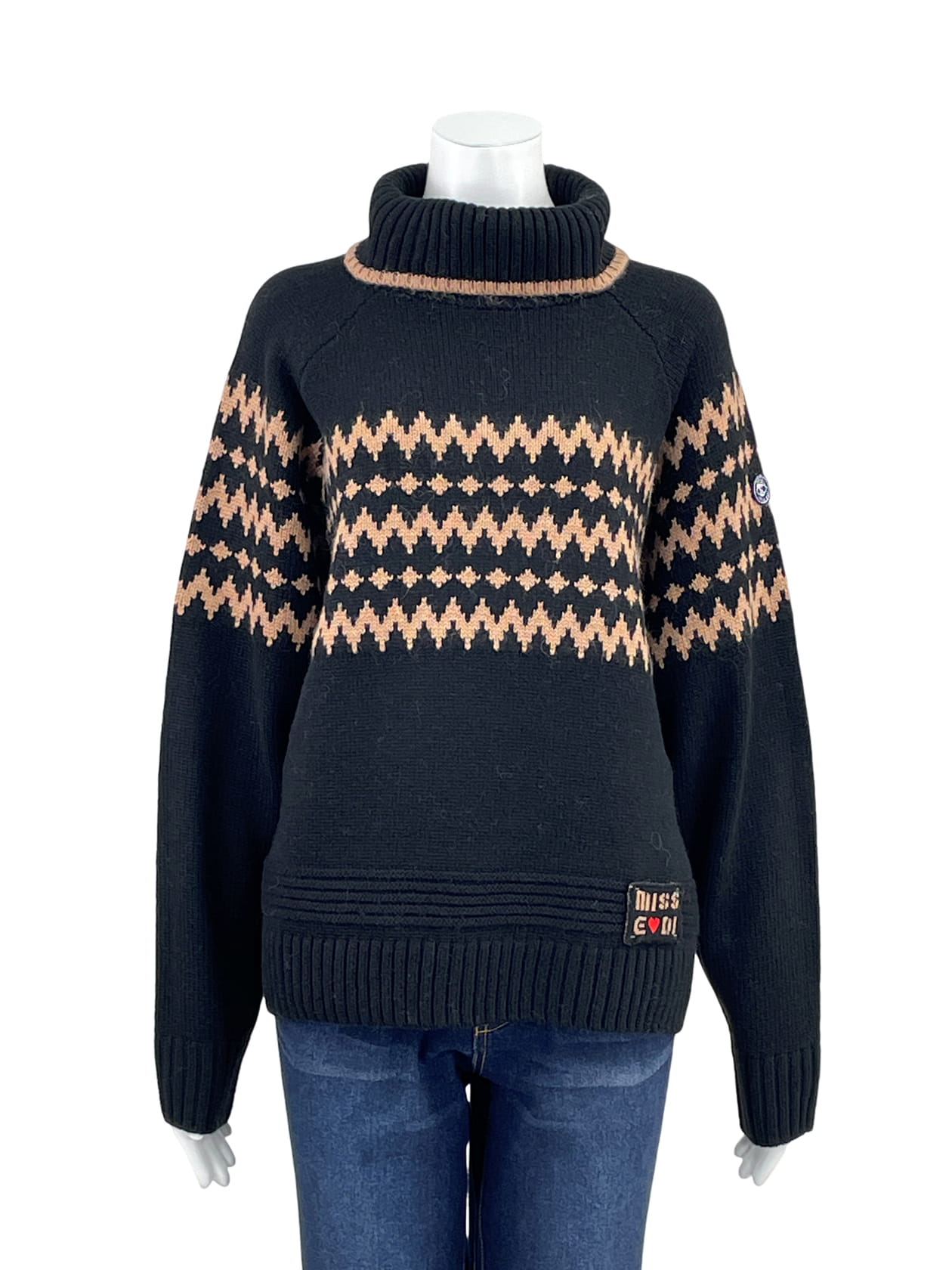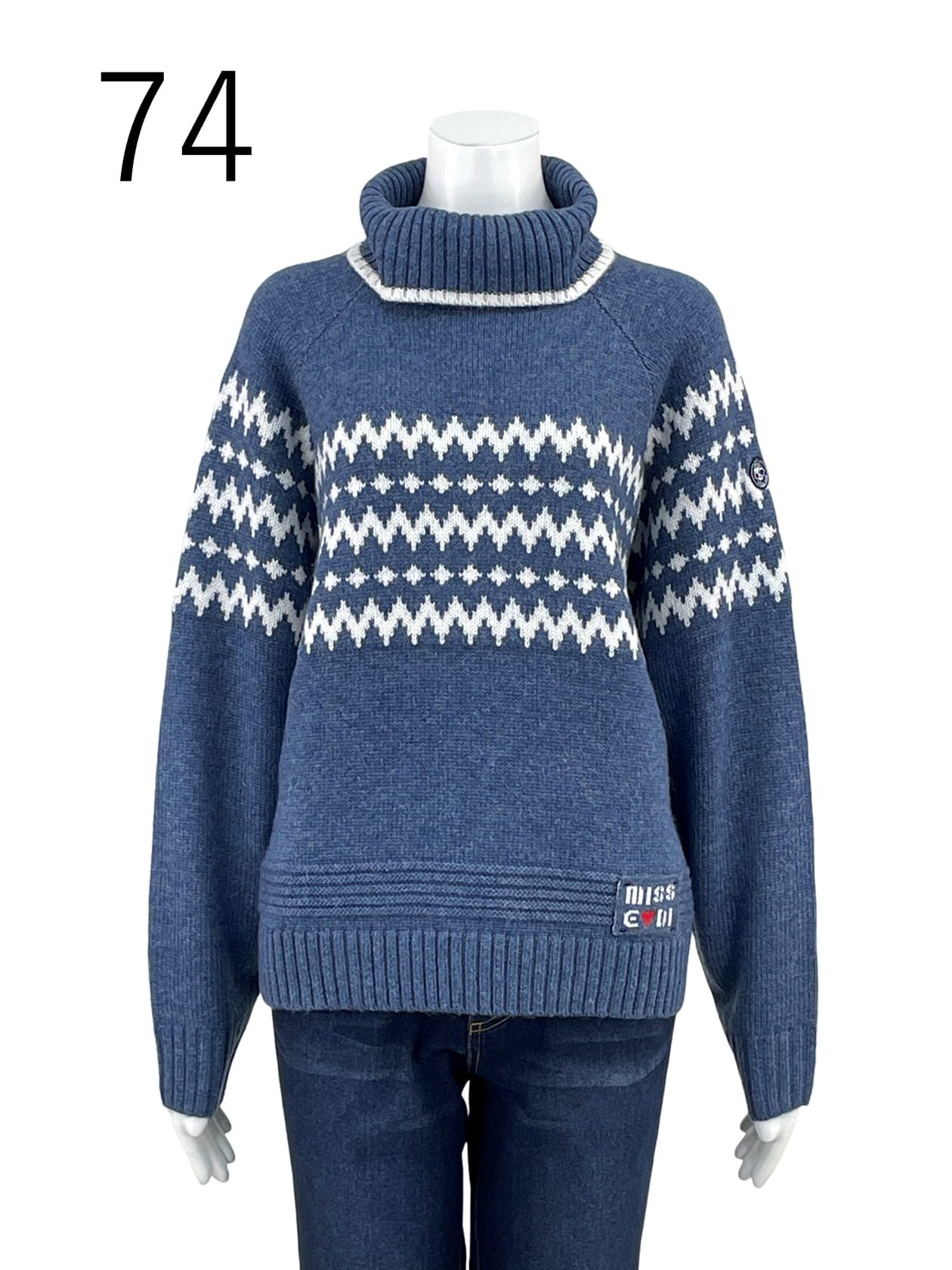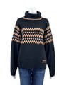 身頃からラグランスリーブにかけてバランスよく配置したジャガード柄が、1枚で表情のある着こなしを演出。
