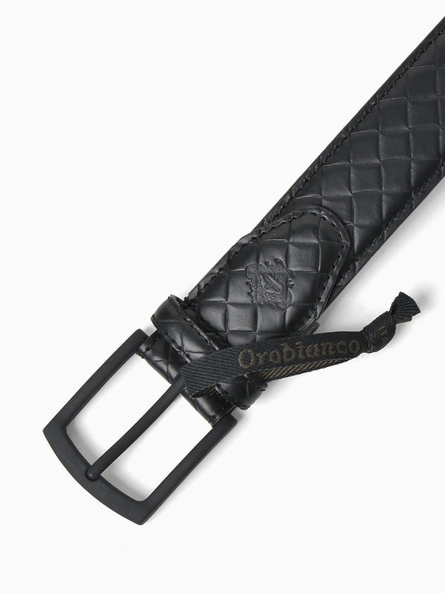 バッグのオールブラックシリーズと同様、バッグルにクロマット塗装を施したブラックベルトシリーズ。黒マット塗装のバッグルにキルティングの型押しの帯を使用。 ギフトにぴったりな箔押しロゴ入りのボックス付きです。