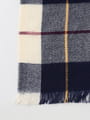 アイボリー×ネイビーの配色がシックなオータムチェックストール。大判サイズで、マフラーとしてはもちろん、コートの上からかけるのもコーディネートのアクセントになります。ベーシックな色合いなので、汎用性が高いのもポイント。イエローやボルドーなどカラーアイテムと合わせると、こなれ感が出ておすすめです。