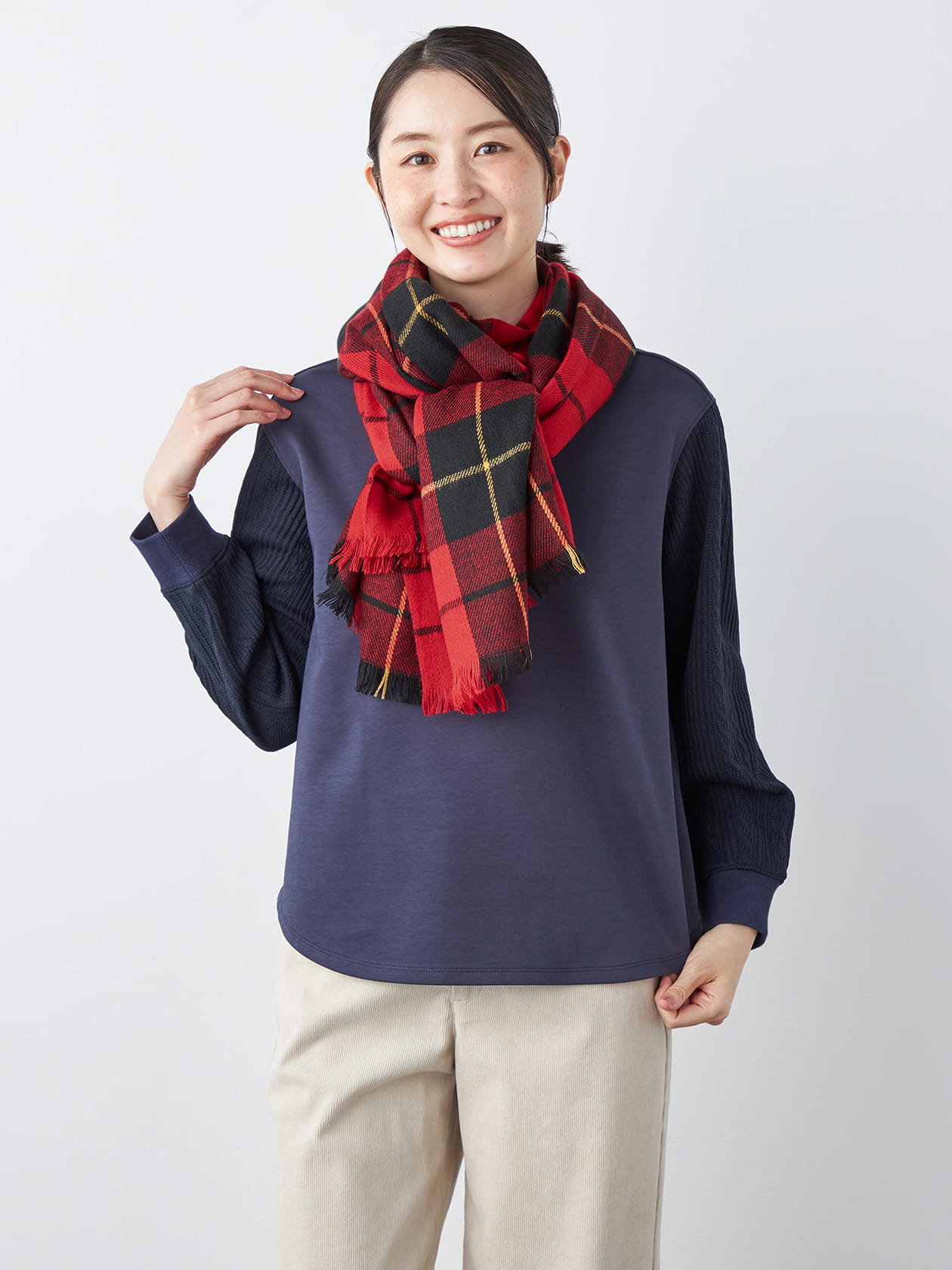 柔らかく薄手の素材はふんわりと纏うだけで優しい暖かさがあり華やかな印象に。いつもと同じコートでも表情豊かなストールがひとつあれば、気持ち新たにおしゃれを楽しめます。これからの季節に大活躍するアイテムです。