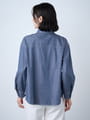 微光沢感のある綺麗なデニムライク素材のブラウス。