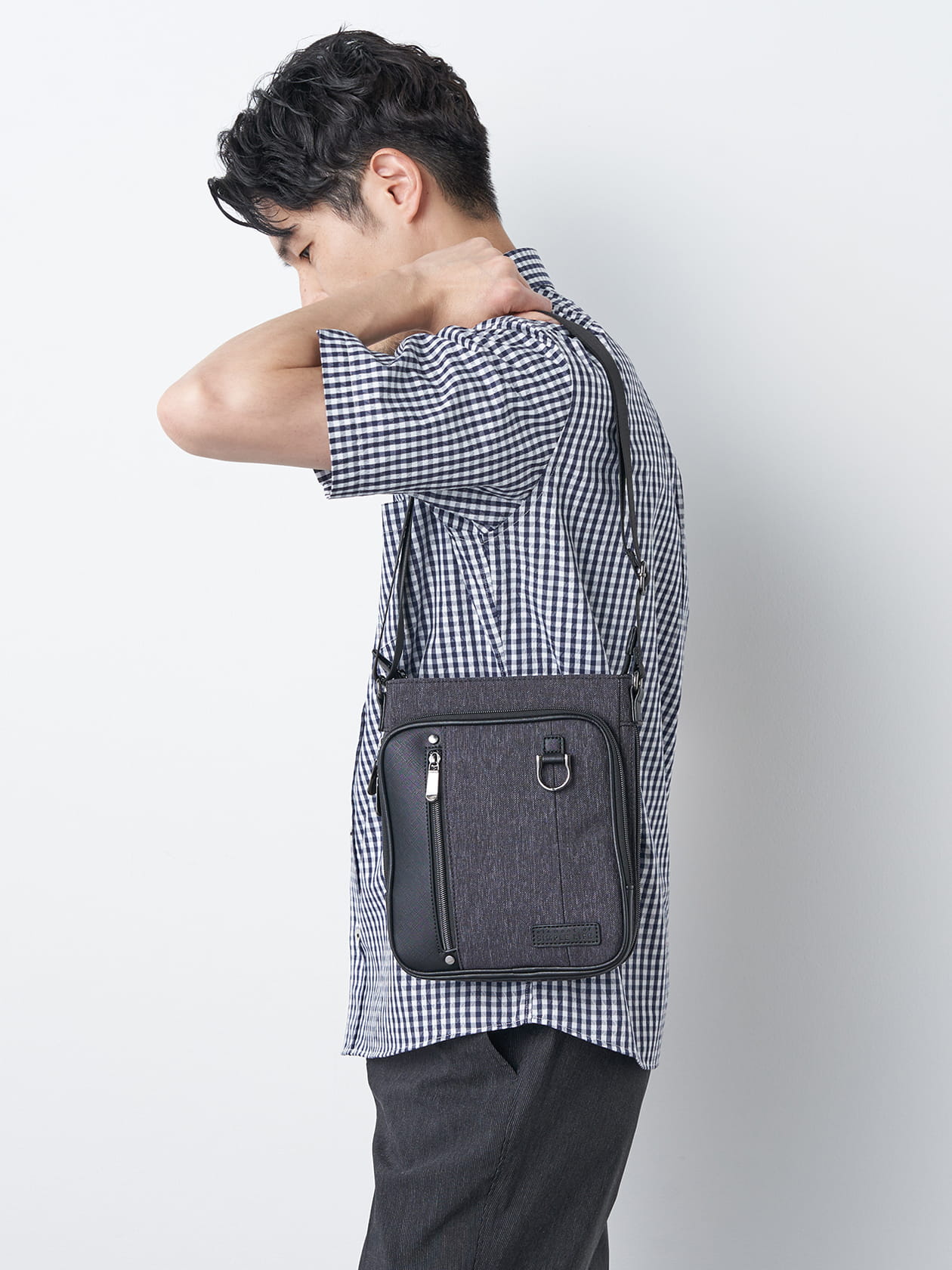 ≪ WEB限定 / 1,111円OFF!対象商品 ≫2025年11月4日(火)23:59まで※商品詳細ページ(こちらのページ)では1,111円OFF後の価格を表示しております。メランジ風のポリエステルを使用したミニショルダーバッグ。上品なフェイクレザーで切替え高級感をプラス。豊富なポケット、容量調節のマチ、Dカン使いなど機能性も充分。使い勝手の良いタテ長サイズで、持ち運びに便利なアイテムに。